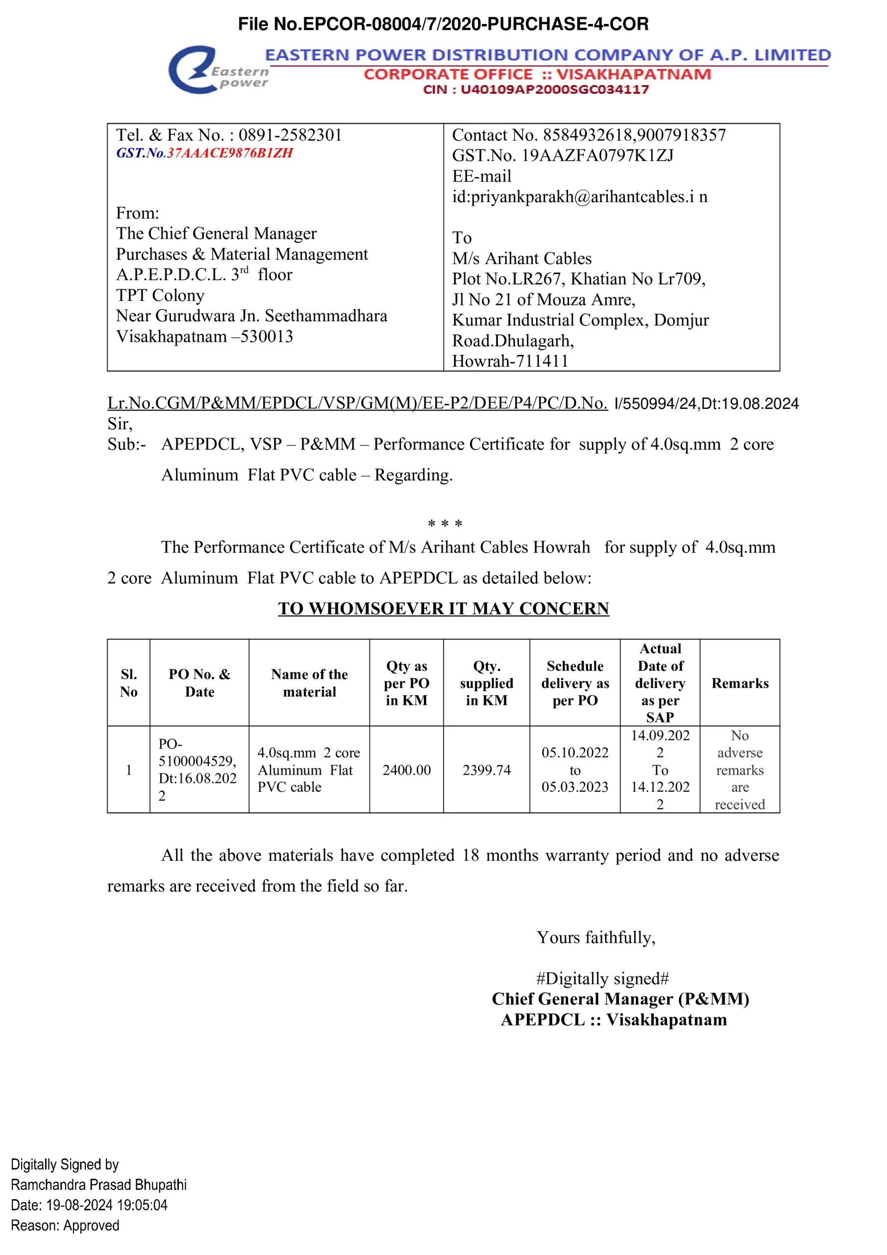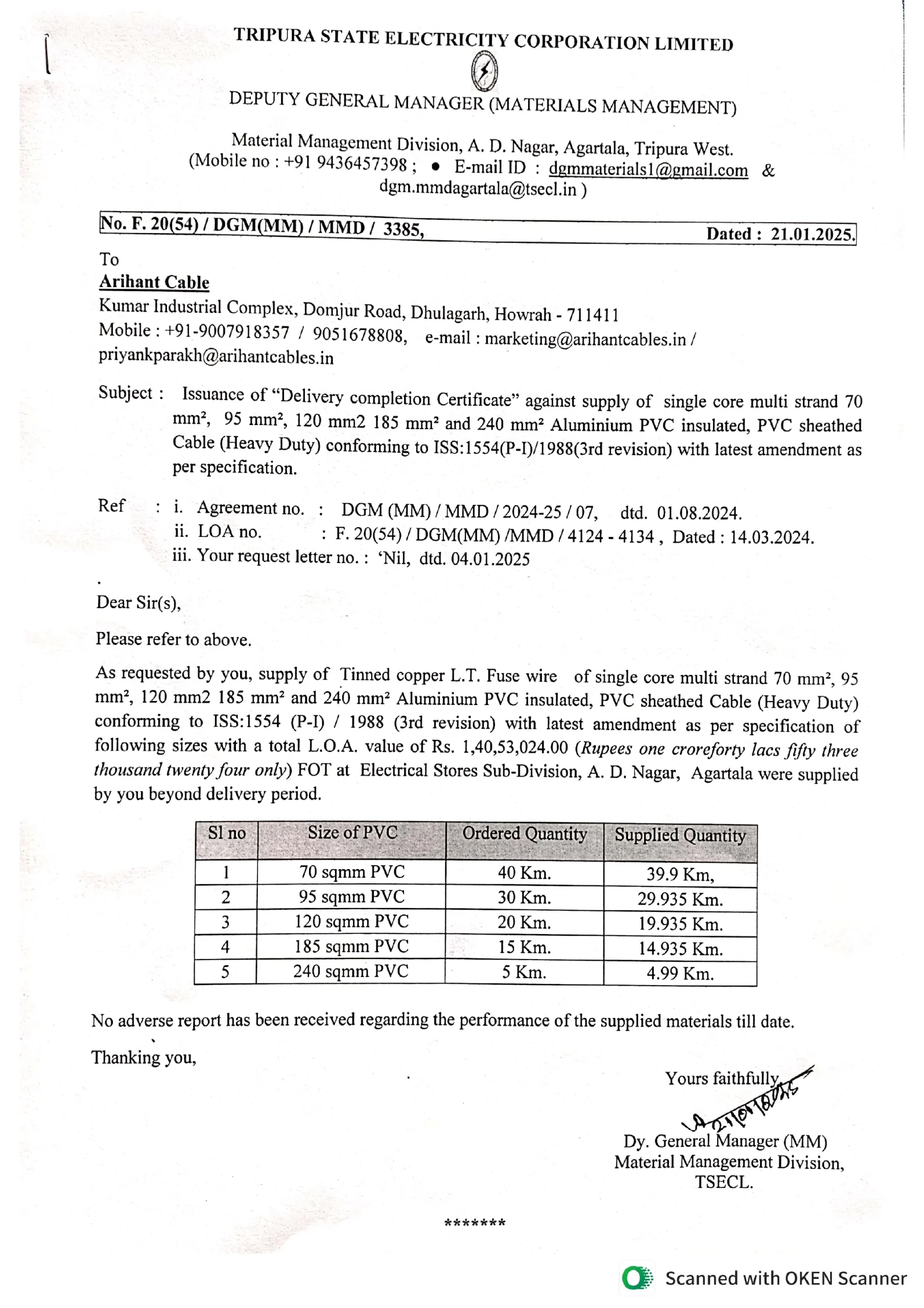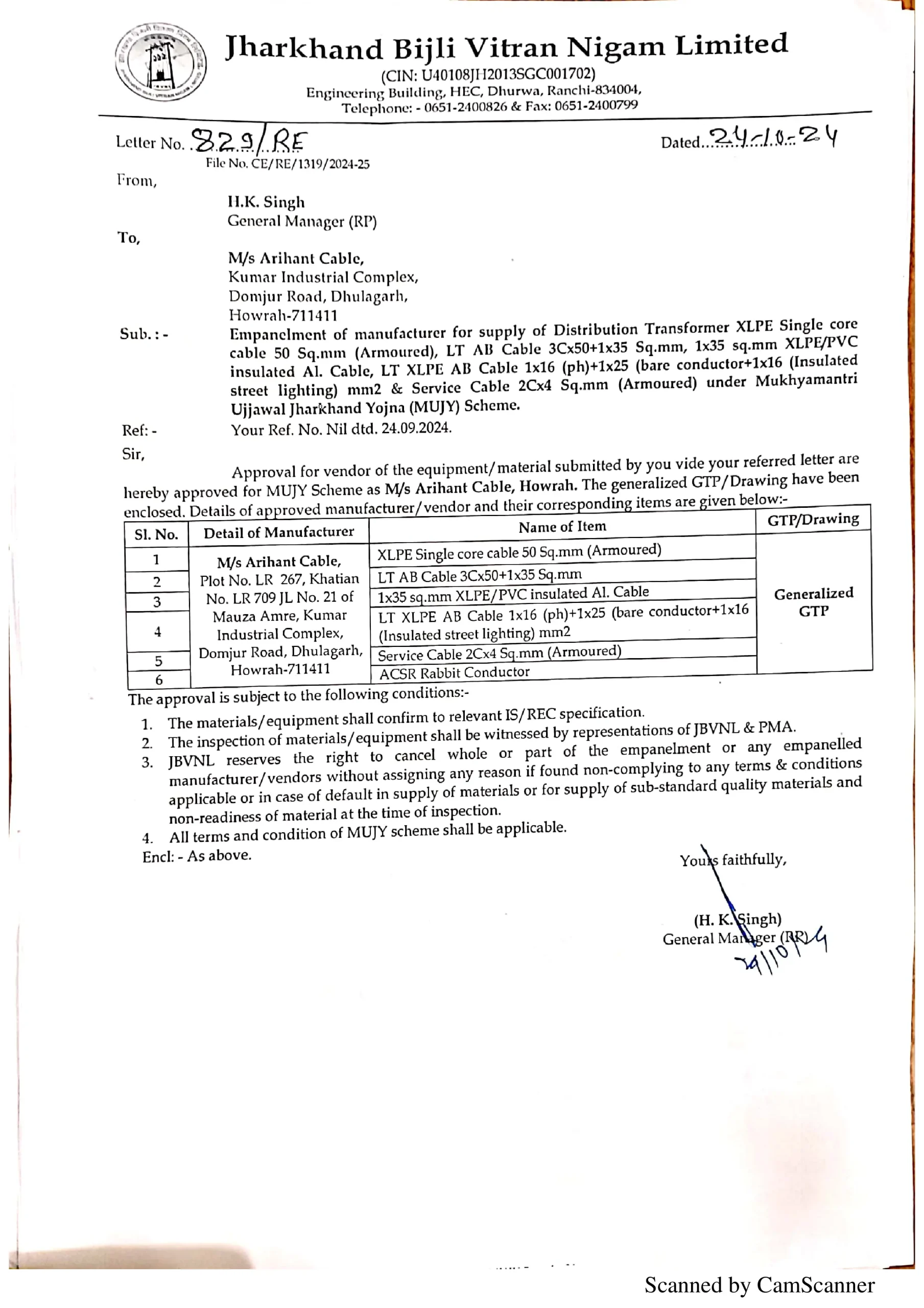 Established in the year 2011, We ‘Arihant Cable’ is a highly trusted organisation involved in Manufacturer of products like XLPE Armoured Cable, Electrical Housing Wire, Multi Strand Wire, Copper Flexible Cable and many more. These are shock resistance, a good conductor of electricity, properly insulated in nature. Our products are efficient, has high resolution and used for various security purposes.